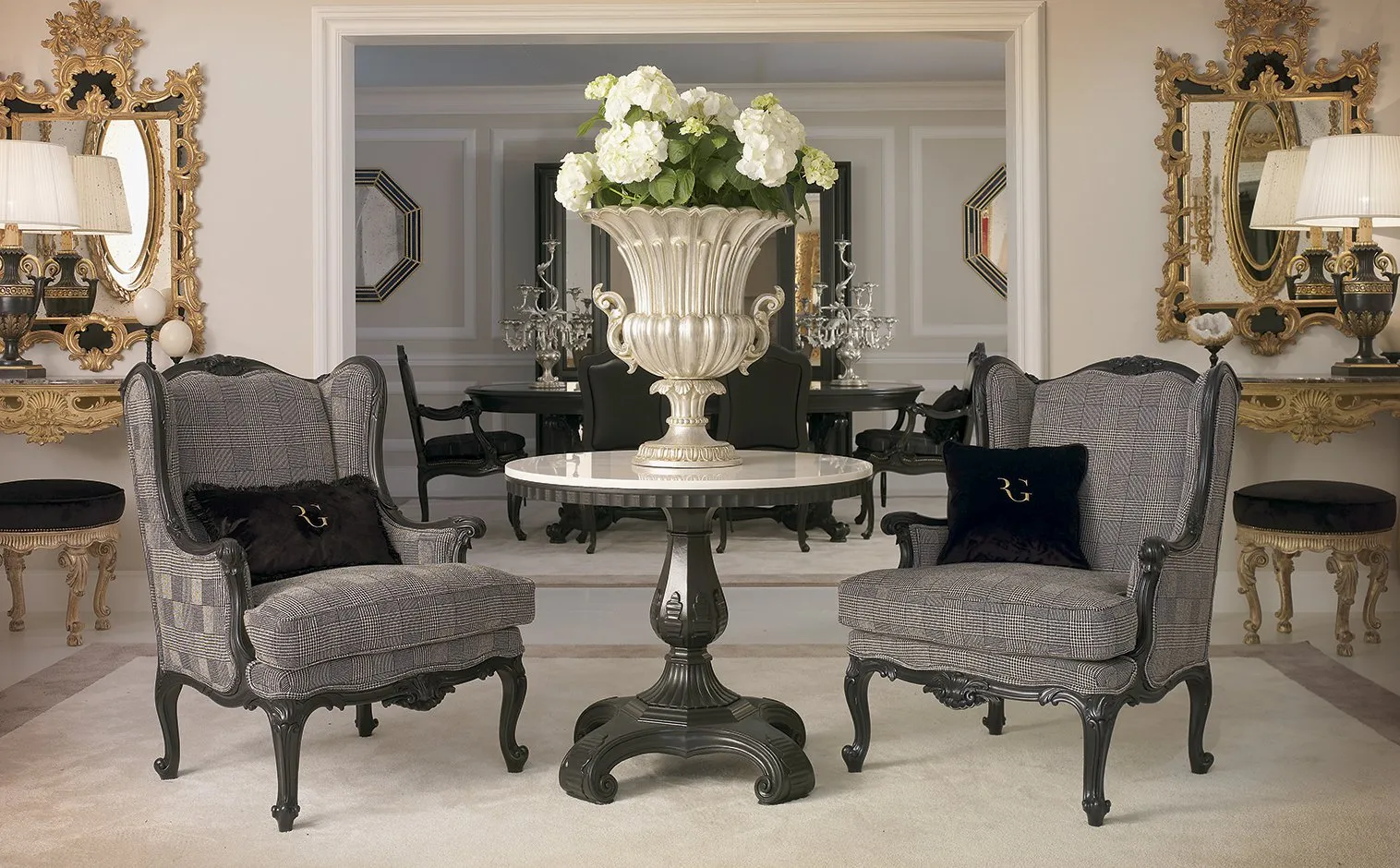 Мы также представляем престижные марки, такие как Caspani Tino, CIAC, Alta Moda, Arredo Classic, Casa Nobile, Callesella, Beta Mobili и Formitalia, предлагая роскошные интерпретации классического, неоклассического и барочного стилей.