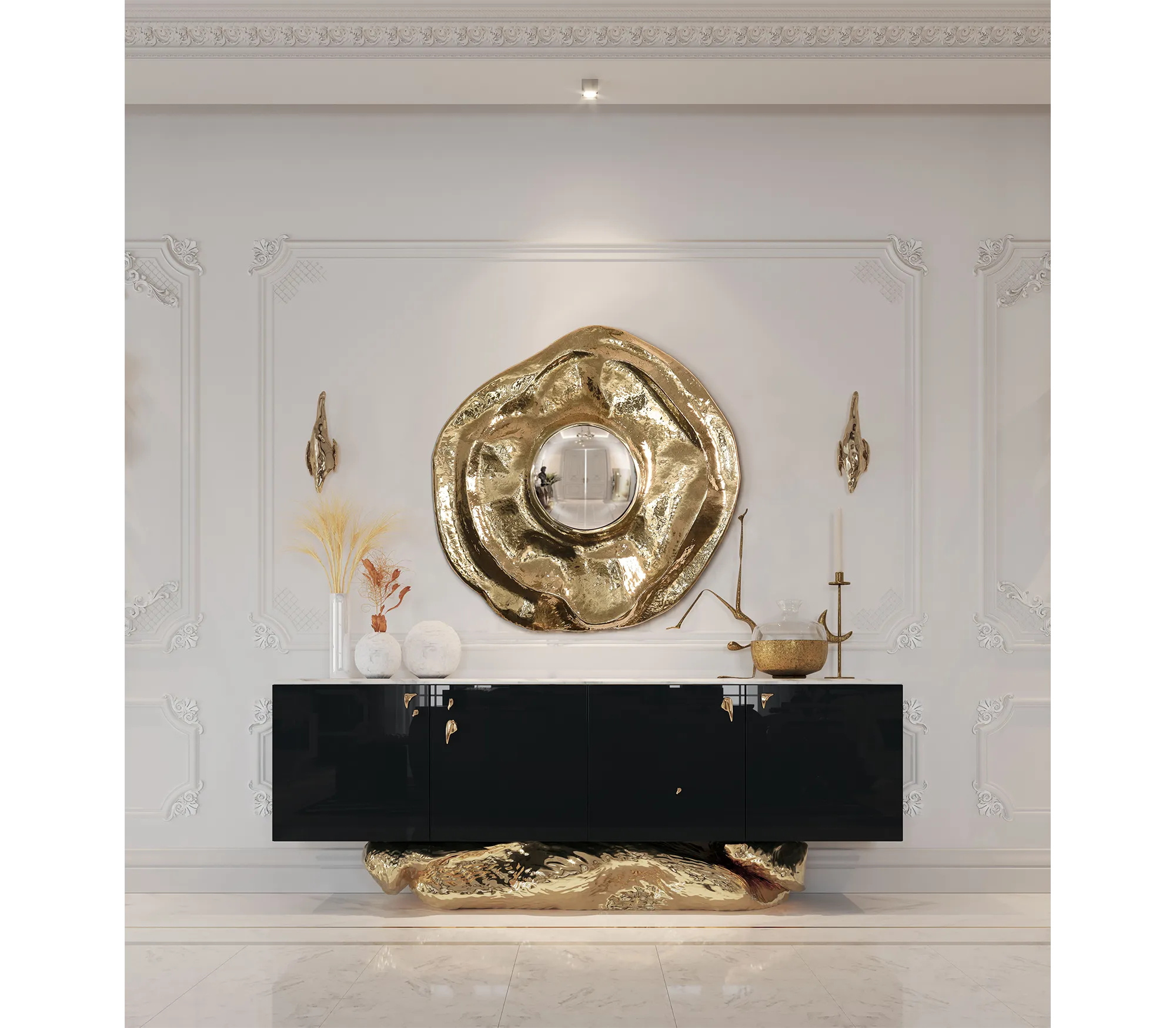 Независимо от того, ищете ли вы скульптурное настенное украшение или функциональное решение — зеркала XENA INTERIOR VISIONS добавляют интерьеру глубину, блеск и индивидуальность.