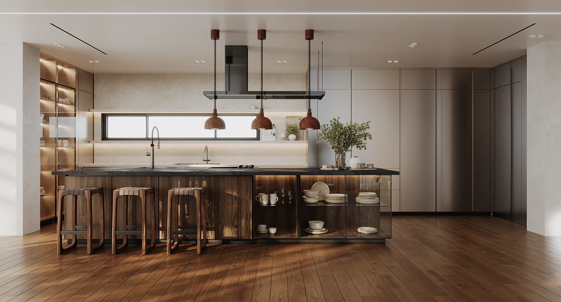 Этот проект родился из редкого и захватывающего чувства абсолютной свободы. Получив "чистый холст" без стилистических ограничений, команда Xena Interior Visions подошла к интерьеру как к живому произведению искусства, заказывая редкие предметы мебели и декора по всему миру. Это гобелен, сотканный из интернациональных мотивов, объединивший в себе сдержанный шик Франции, скульптурную смелость Италии, утонченный комфорт Америки и искусную работу ремесленных мастерских Азии.